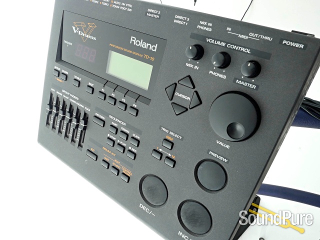 The V-Drums TD-10 Percussion Sound Module presents drummers and drum programmers with a truly revolutionary electronic percussion environment. Using Roland's proprietary COSM technology, V-Drums TD-10 users can model drum and percussion sounds with stunning realism and sonic flexibility. The TD-10 enhances this capability with lightning-fast drum triggering and onboard effects processing.
