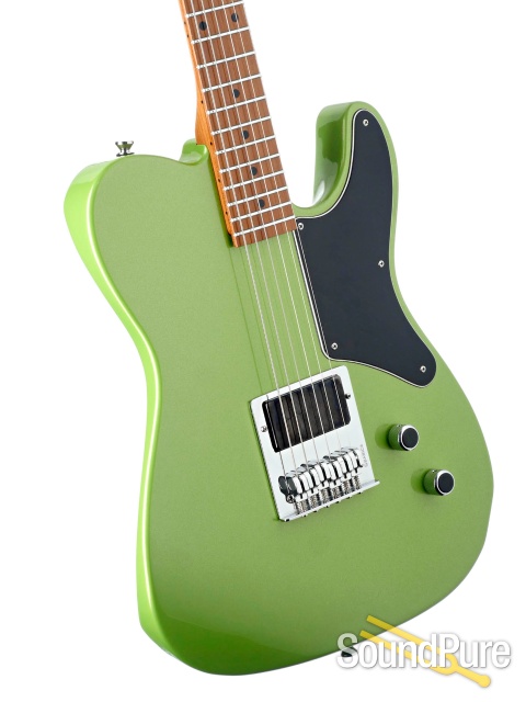 What is that, the Esquire from Mars?! Seriously an out of this world creation from Ron Kirn. Not your garden variety rock stick! This masterful green time machine can go backwards and forwards, too, making the old things new and the new things true. That killer humbucker can definitely access those bright, aggressive classic tele tones but is a great deal more focused, rich, and, in a word, well-behaved than a straight up single coil. 100% worth more than the price of admission!