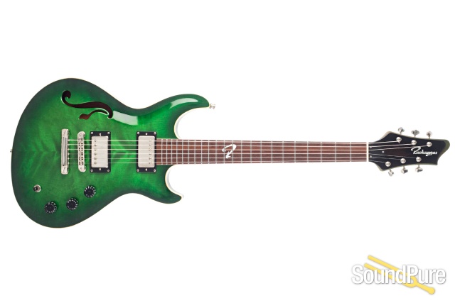 Master builder, Juha Ruokangas, sure knows how to make something special. Basing the Duke on a quest for the true tone of '50s set-neck guitars but featuring some rarer tonewoods, this Duke Artisan has a soulful, wizened sound, an ergonomic shape, and an eye-popping transparent green finish the likes of which we've never seen before!