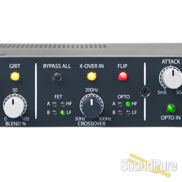 To further expand the OptoFET’s creative capabilities, a unique new ‘GRIT’ mode transforms the FET compressor into a powerful wave shaper, introducing ample harmonic distortion focused in the upper frequency range. GRIT can be used to either slightly accentuate sources so they ‘pop’ in just the right way or transform them into something entirely new. GRIT is also especially useful when combined with the blend control to achieve an exacting amount of distortion character for a wide range of sources.