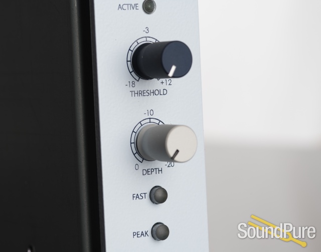 The FAST control is an illuminated push-button that selects between two available time constants, tuning the 545’s response by determining how quickly the attenuation occurs in the quiet sections between words or phrases. Without this button pressed, the 545 achieves a slower attack and release that is useful as a starting point for most sources. Pressing the FAST push-button engages the faster attack and release time constant, useful on more dynamic sources or passages where faster transient detection is necessary.