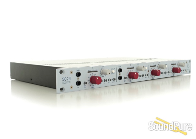 In addition to 72 dB of gain, the 5024’s mic pres include individually selectable phase, mute, phantom power, a selectable frequency high pass filter, and the Silk circuit which yields the rich warmth and presence of the renowned classic designs. Channels 1 & 2 of the 5024 feature a high-Z input designed for instrument level sources. Channels 3 & 4 feature an M-S switch, which enables Mid-Side decoding without the use of multiple console channels.