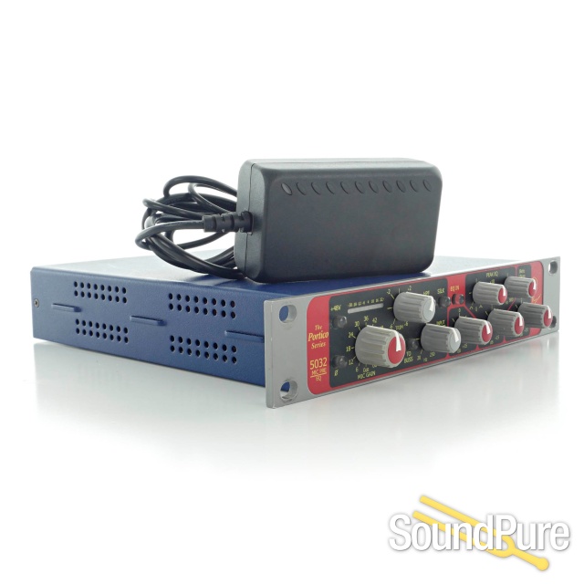 The Portico 5032 is a single channel Mic Pre/EQ having an independent transformer coupled Line level input for the EQ section. It includes a full-featured Mic Pre identical to the 5012 with the addition of a flexible 3 band Equalizer in the Mr. Rupert Neve tradition. The 5032 is equipped with high and low frequency shelving curves and a Parametric Mid Band covering 80Hz-8kHz in two ranges.