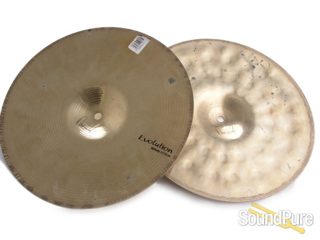 These Sabian 13" HHX Evolution hi-hats are in good used condition. The HHX logo on the top cymbal has some fading, but the rest of the logos look great. The top hat also has a slight edge ding, but it is very tiny. No cracks or keyholing.