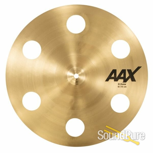 Following the success of the HHX Evolution O-Zone Crash, Sabian has introduced the AAX O-Zone Crash. Featuring the innovative multi-hole O-Zone design created by the award-winning company, the AAX O-Zone Crash cymbal is a thin, highly responsive model available in three sizes: 16", 18", and 20". The 16" is perforated by six 1-1/2" holes, the 18" and 20" by eight 1-1/2" holes.