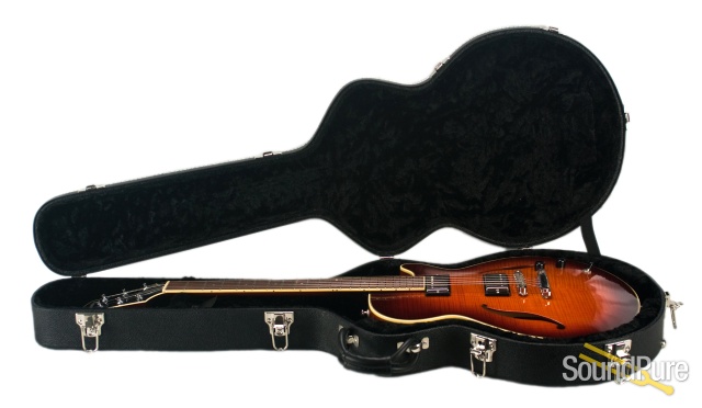 Designed to achieve a traditional jazz tone yet able to function without feedback in high volume and/or large band environments. Chambered spruce center block achieves warm acoustic tone with maximum feedback resistance. Traditional two pickup design with master volume, tone and selector switch.