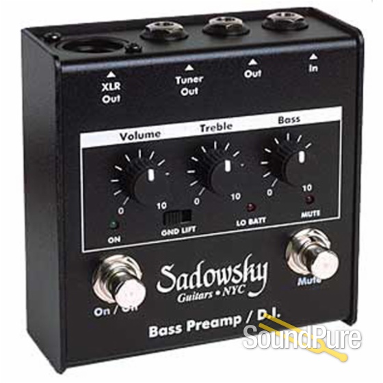 The Sadowsky Outboard Bass Preamp/DI Pedal contains the same famous circuitry built into every Sadowsky bass. Housed in a small footpedal box for use on the floor, it measures just 4.5" x 4.5" x 2.25" and weighs 1.5 pounds. Just plug your bass into the box and then go from the box to your amp, and/or direct to the board.