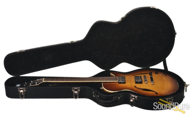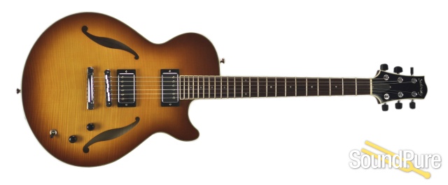 Designed to achieve a traditional jazz tone yet able to function without feedback in high volume and/or large band environments. Chambered spruce center block achieves warm acoustic tone with maximum feedback resistance. Traditional two pickup design with master volume, tone and selector switch.