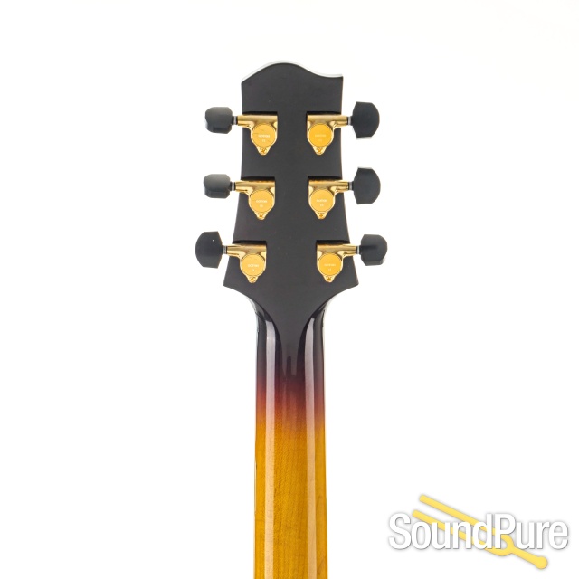 Sadowsky's Jim Hall model archtop with laminated flame maple construction, and Ebony & Gold appointments.