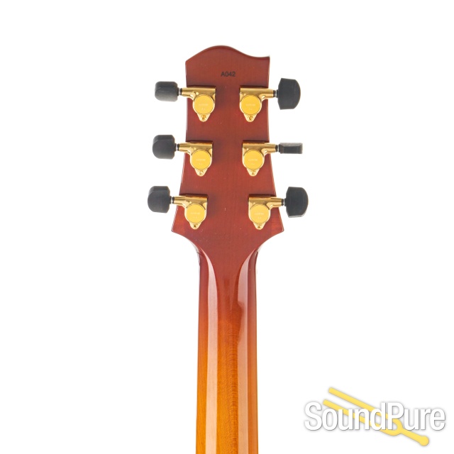After several prototypes, Roger refined the Jim Hall Guitar by reducing the thickness of the top and back to provide a more acoustic response. He reduced the depth of the body to control feedback, designed a new ebony tailpiece with a string ground, and shaped the neck until it felt just right to Jim.