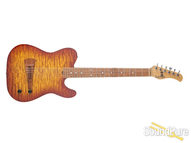 The Sadowsky Nylon Electric Guitar offers a beautifully modern take on nylon-string tone, blending acoustic warmth with sleek electric playability. A chambered equatorial mahogany body paired with a premium quilted maple top delivers rich resonance and striking visual appeal, while the maple neck and Morado fingerboard provide smooth, comfortable feel across the 25.5" scale. Its elegant caramel sunburst finish with scraped binding highlights the craftsmanship, and the lightweight build makes long sessions effortless. Thoughtfully designed and expertly built, this Sadowsky is an inspiring nylon-string instrument and a refined investment for players seeking expressive tone and standout style!