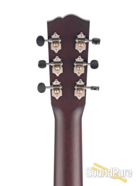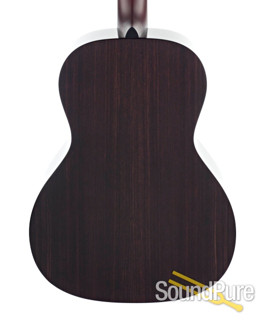 Like a moonlit winter night in both looks and sound! We chose a dark, somber appearance (even requesting some particular purple-ish/black-ish East Indian) for this endlessly expressive 14 fret Nick Lucas style and the fit couldn't be better. Fingerpicked, the guitar sounds like something between the darkest, richest 00 you've ever heard and a Classical; with a pick, you get a tonal response that comes across as a tighter, punchier slope shoulder dread. Just incredible!