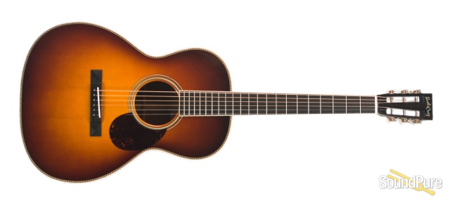 A custom-built H13 from Santa Cruz with figured Mahogany back and sides, an Italian Spruce top and a full body sunburst! Serial #1414