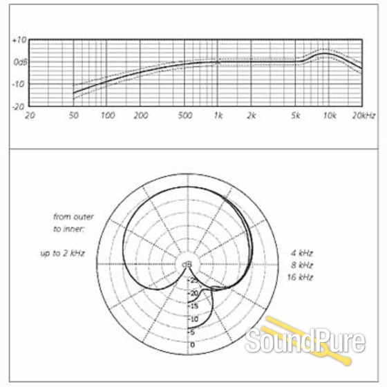 This cardioid microphone, with its main axis along its side, improves speech intelligibility in very loud environments. It is designed for the very closest speech pickup, i.e. directly in front of the speaker’s mouth. Its low-frequency rolloff is compensated by proximity effect. Thus it has (up to the point of its high-frequency emphasis) a flat frequency response for the speaker’s voice, while showing a rolloff at low frequencies for all sound that originates from a greater distance. As a result, background sounds are picked up less strongly than the person speaking.