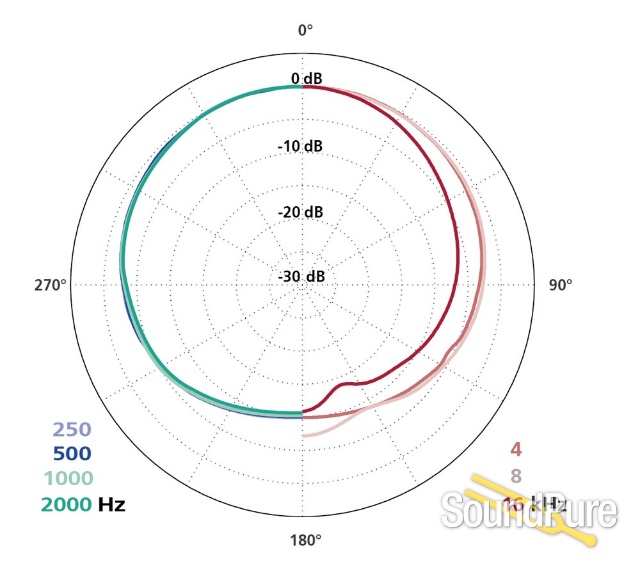 When used as a spot microphone, the distance from the sound source should be slightly smaller than when using a cardioid due to lower directivity index.