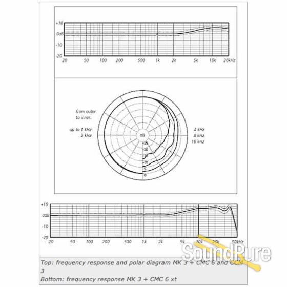 The MK 2XS is designed for placement in a diffuse sound field, i.e. at distances in reverberant environments where the greater portion of arriving sound has already been reflected from various room surfaces. In such placement the integrated frequency response of this capsule is essentially flat; the on-axis high-frequency response elevation shown in the graph below is not heard as such. It is remarkable how well-focused a recording can be made with omnidirectional microphones at such distances, when the microphones have been designed and placed appropriately.