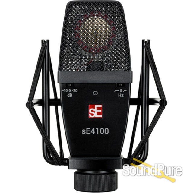 Featuring the same high-level performance and handcrafted vintage-meets-modern sound of the celebrated sE4400, the sE4100 sports twin 1" gold-sputtered Mylar diaphragms in a durable, solid-brass capsule. The fixed cardioid pattern provides excellent off-axis rejection, making the sE4100 a studio workhorse ideal for a wide range of sources, including vocals, guitar, drums, orchestra, brass, and much more. The sE4100 includes a shockmount, a thread adapter, and a metal case.