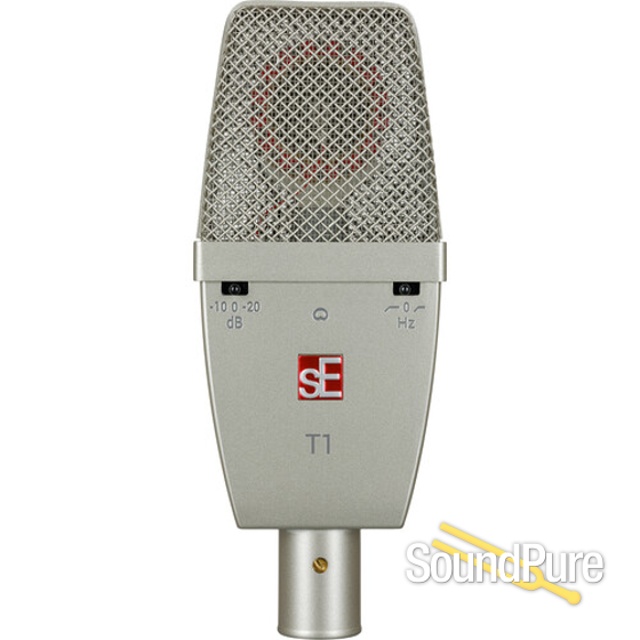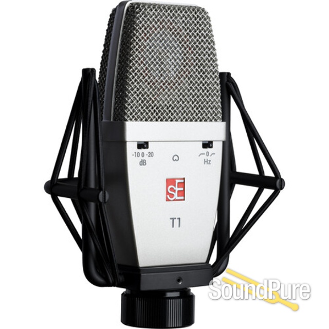 Improving upon the technology of the renowned T2 while cutting out unnecessary complications, the T1 Large-Diaphragm Condenser Microphone from sE Electronics is a quality studio condenser mic with a fixed cardioid pickup pattern and a 1" titanium capsule. 33% stiffer and more than 300% lighter than gold, the titanium-sputtered diaphragm offers a superior transient response, ideal for drums, cymbals, and bass recording applications.