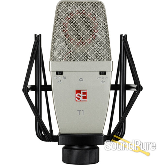 Improving upon the technology of the renowned T2 while cutting out unnecessary complications, the T1 Large-Diaphragm Condenser Microphone from sE Electronics is a quality studio condenser mic with a fixed cardioid pickup pattern and a 1" titanium capsule. 33% stiffer and more than 300% lighter than gold, the titanium-sputtered diaphragm offers a superior transient response, ideal for drums, cymbals, and bass recording applications.
