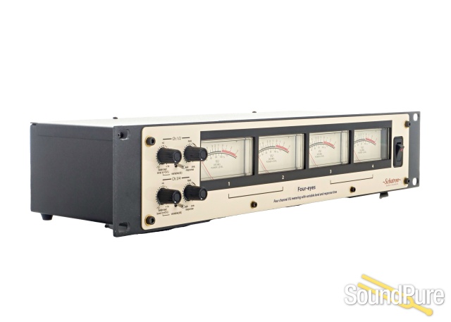 Four-Eyes is a dedicated four channel VU metering device designed for usage in both pro and semi-pro ( or Hi-Fi) situations.
