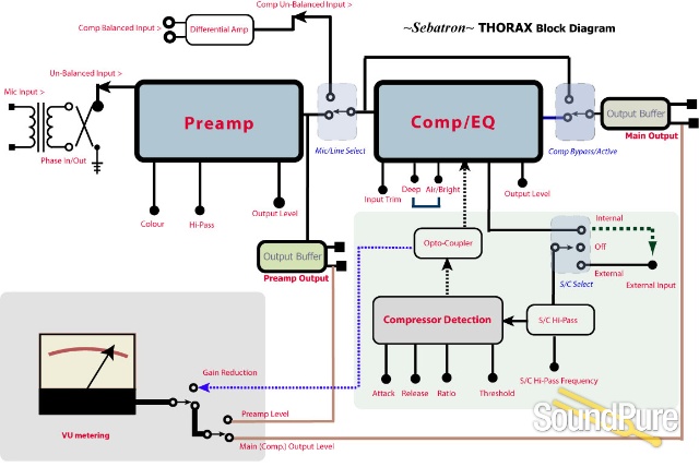 The Sebatron THORAX is an evolution from previous models, most notably in Frequency response, dynamic range, and improvements over noise floor and compression characteristics. Quality components and build make this Valve Microphone preamp and Compressor a must for any professional recording setup!