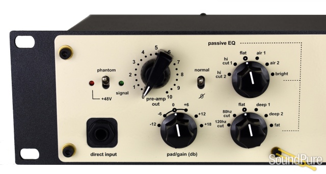 • Six-way Pad/Gain control in 6db increments that sets the gain and colour of the preamp