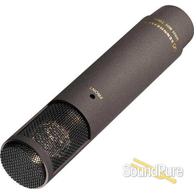 The MKH 800 TWIN is a universal studio condenser microphone of exceptional quality. It includes a dual capsule consisting of two symmetrical push-pull transducers with high linearity. This is a "side fire" microphone with the two cardioid pick-up patterns of the transducer aligned back-to-back across the axis of the microphone. The signals of both transducers are not combined in the microphone in order to generate differing pick-up patterns but are available separately as two channels at the microphone output. This allows the pick-up patterns of the MKH 800 TWIN to be remotely adjusted. The signals can be combined in any desired way in the mixing console in order to create all pick-up patterns from omni-directional to figure-8 with an infinite number of intermediate stages. Based on the legendary MKH 800, this microphone opens up to a new dimension of studio recordings.