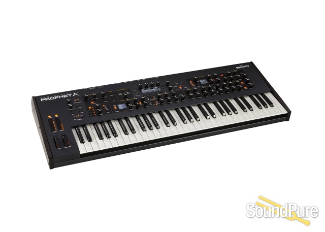 With loads of sonic firepower and personality, a five-octave, premium-quality, semi-weighted keyboard with velocity and channel aftertouch, an integrated power supply, MIDI USB support, and three crisp OLED displays, the Prophet X fits into any music rig or gig — in the studio or on the road.