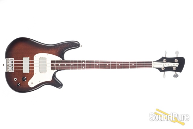Jake Serek has done it again with another killer Midwestern 2. Combining the slim body shape and the shortened 32" scale with Curtis Novak's powerful Thunderbird pickups this bass sounds twice as big as a looks and feels! The neck position is warm and wooly, filling up every nook and cranny with sustain and rich tone and the bridge position brims with midrange bark and is sure to cut through even the most dense mix. And the two-tone sunburst (based on a particularly handsome non-reverse Thunderbird) is rich, dark, and soaked through with a well aged vibe!