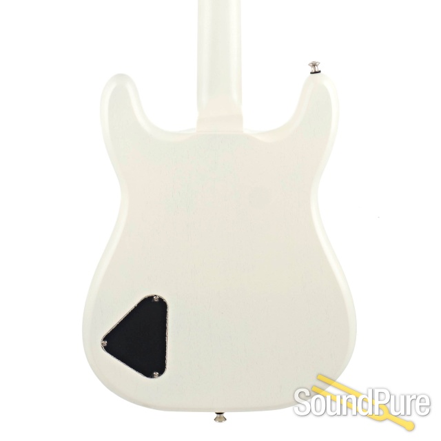 Harking back to a proven combination we fell in love with once before, this Reverse Tuxedo Midwestern adds some classy black touches to our 'white-out' Midwestern (#098). There's something truly wonderful about the tone and feel of these 30" scale thunderers. The neck is deep enough to be comfortable, but slim enough to never get in the way and the Decoboom Streamliner gaurd adds a little flare, tying all the white/black appointments together.