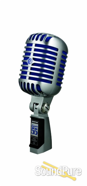 The Super 55 Deluxe Vocal Microphone features a signature satin chrome-plated die-cast casing, Supercardioid polar pattern, vibrant blue foam, and tailored frequency response for natural vocals and speech. Ideal for stage, studio recording, podcasting, and other sound applications where a stand-mounted microphone with a classic look is desired. Integrated, swivel stand mount is included.