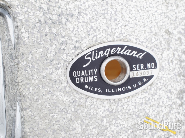 An uncommon find, and in good condition, the Slingerland Artist model 10 lug snare drum is warm with snap and sizzling pop! Produced in the late 60's or early 70's, it has the maple interior and original silver sparkle wrap with tight seams. The chrome is in overall good to great condition with very little signs of pitting but there are some light surface scratches on the lugs and hoops. All parts appear to be original and work well. No extra holes or modifications. We've seen some great drums over the years and this is an excellent player drum to add to any collection.