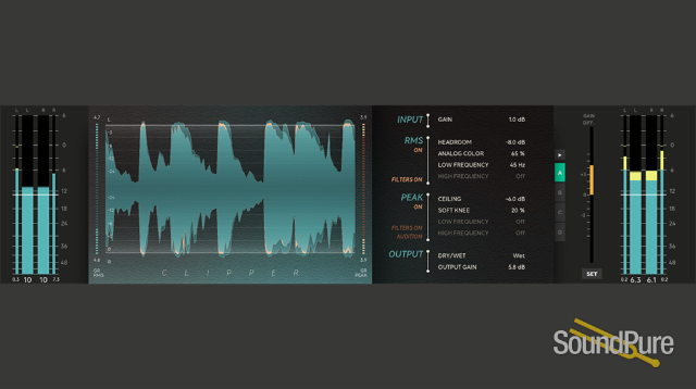 Clipping the peaks of a signal produces an audible sound. If it's overdone, it can sound unpleasant. That's because peak clipping is an analytical function rather than a musical one. To combat that, we matched the peak limiting stage in Clipper with an RMS stage you can use to gently shape the material before it goes into the peak clipping stage.