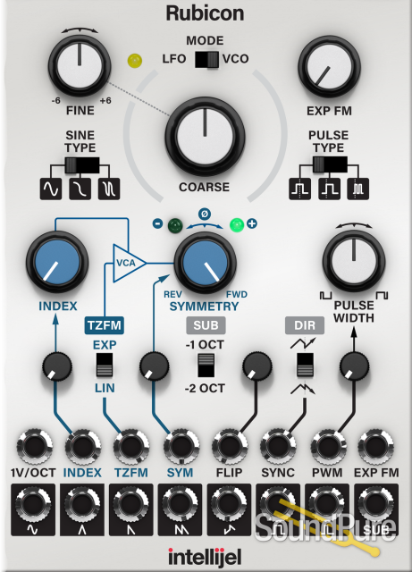 The Rubicon, from Canadian Eurorack wizards Intellijel, is an analog triangle core VCO, capable of thru-zero frequency modulation. Originally created by Dave Dixon, it is rightly considered an analog VCO design masterpiece.