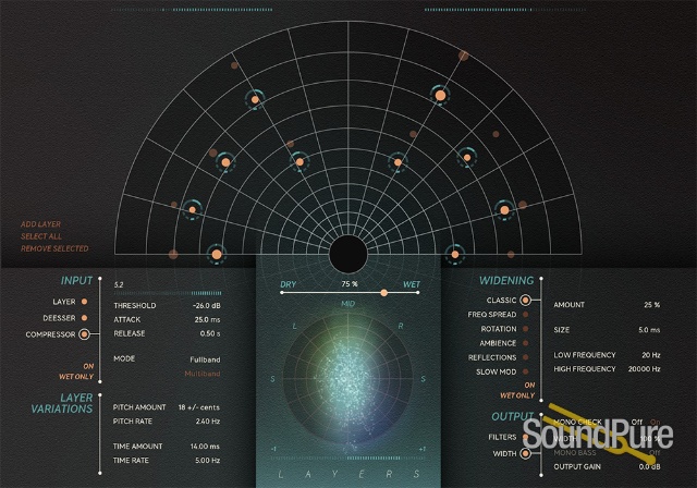 Intuitive control of doubles, quick macro control over organic modulation, world-class widening algorithms, full- & multiband compression, de-essing, octave effects... Layers gives you all that and none of the common hassles and hang-ups. Get detailed control over doubling and widening for vocals and more with Layers now.