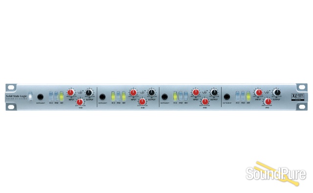 The Alpha VHD-Pre offers four of SSL's widely acclaimed VHD Pre circuits in compact 1U format. First featured on our flagship Duality console and now the go to circuit for leading engineers worldwide, the VHD Pre is a patented SSL preamp design that can deliver ultra-clean SSL grade recordings but also features a patented 'Variable Harmonic Drive' circuit which can be switched into the signal path. The Variable Harmonic Drive circuit uses a 100% analogue signal path to generate rich harmonic distortion. As you increase the input gain, the Variable Harmonic Drive circuit introduces either 2nd or 3rd harmonic distortion or a blend of the two to your source material. At lower gain settings it adds gentle valve-style warmth or a touch of transistor edge. As the gain is increased the more extreme the distortion becomes until at high gain settings it delivers fierce trashy transistoresque grunge. VHD pre's give the user ultimate versatility from a studio grade preamp. Whether it's ultra-clean traditional SSL, subtle warming or totally trashy transistor distortion. VHD delivers a uniquely versatile pallette of rich analogue character that can be applied as a mic pre, instrument DI or line level processing device.