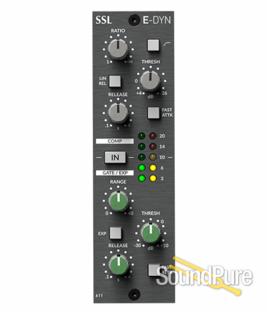 The new E Series Dynamics Module for 500 Series racks reproduces the legendary sonic signature of an early 80's classic, the SL 4000 E console channel strip, which was featured on countless 1980's recordings. The E Series Dynamics Module features a compressor/limiter and an expander/gate, both of which return faithfully to the circuitry and key components which define the sound of the original SL 611E Series channel strip.