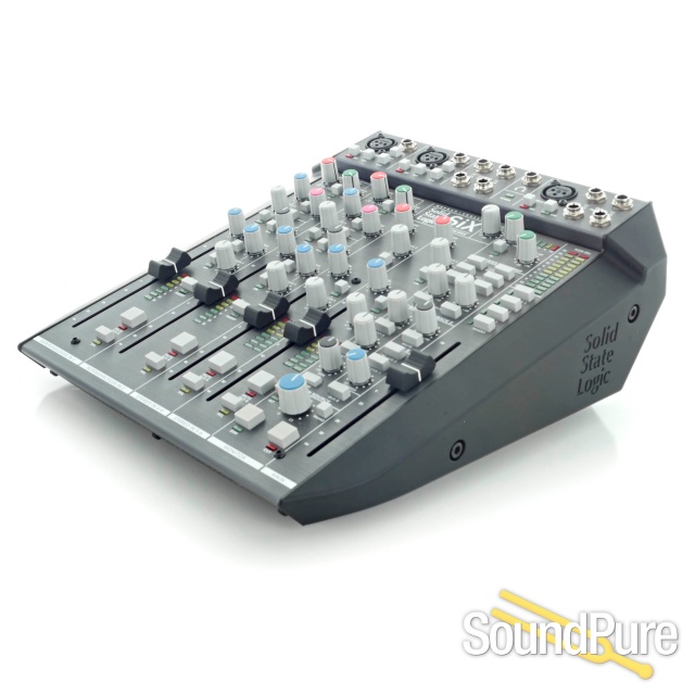 SiX is a condensed professional console for use in the studio, in post-production, on stage, and for podcasting. SiX offers big console sound and an impressive set of utility features in a format that is small enough to stick in a bag a go wherever you need it. SiX is stunning value; it offers two recording channels with SuperAnalogueTM mic pres, two band EQ, an essential one knob version of the classic SSL Channel Compressor, a new two-band Channel EQ, inserts and 100mm faders.