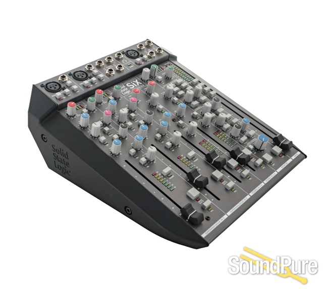 SiX is a condensed professional console for use in the studio, in post-production, on stage, and for podcasting. SiX offers big console sound and an impressive set of utility features in a format that is small enough to stick in a bag a go wherever you need it. SiX is stunning value; it offers two recording channels with SuperAnalogueTM mic pres, two band EQ, an essential one knob version of the classic SSL Channel Compressor, a new two-band Channel EQ, inserts and 100mm faders.