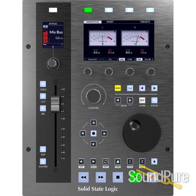 UF1 is the ultimate single fader controller for anyone who wants comprehensive control of their DAW, bringing SSL’s renowned advanced workflow to in-the-box productions. UF1 boasts a premium 100 mm motorized fader, dual high-resolution displays, soft-feel durable rubber keys and a weighted jog wheel, all encased in a robust metal chassis. UF1 offers complete control of a DAW’s pans, sends, plug-in control and more, plus the ability to customise 46 soft keys specifically to your workflow. Clear and insightful visual feedback, intuitive control and deep integration with the SSL Meter Plug-in and SSL 360° software - UF1 offers power and control never seen before from a controller of this size.
