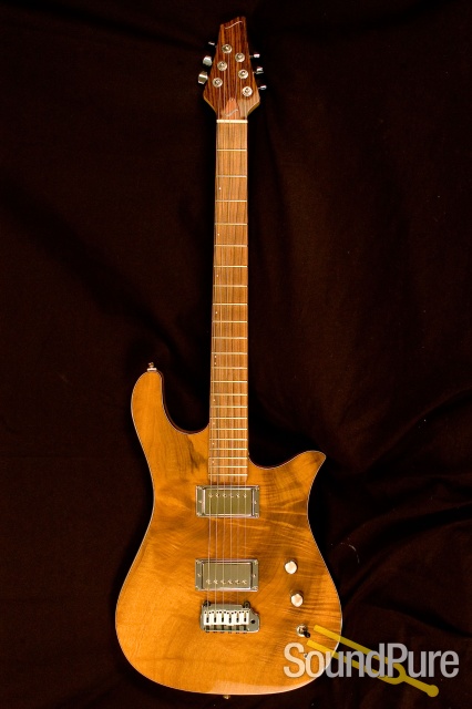 Jim Soloway has been making hand-crafted guitars that provide something a little different than your normal electric guitar, and this iteration of the Soloway Swan is no exception. Fitted with a longer 27-inch scale length, and a longer neck to fit the larger scale-length, hence the "Swan" moniker. This guitar is also very unique in using Oregon Myrtle for the top-wood, something you don't see too often, but also provides some really full-bodied and transparent tonal qualities specific to this kind of wood. With such a larger scale length, and a longer neck, it would be easy to say that playing this guitar would be more difficult to do when using complicated chords or intervals, but that is not the case at all. Even at the bottom of the neck, those tricky chords and spaced out intervals can still be easily reached with the Swan's thin neck profile, flat fingerboard radius and larger frets to accomodate the player with the added length in scale. Also, with the added length the Swan from Soloway Guitars operates great in lower tunings, but is actually intended to be played in standard tunings, to really achieve the presence, articulation and clarity that defines this beautiful guitar. Thanks to our very own Electric Guitar Expert Jared for helping us to show how great this Soloway can really sound. Call SoundPure today for any questions about this gorgeous Electric Guitar from Soloway Guitars, or about any other gear used in this video 919-682-5552.