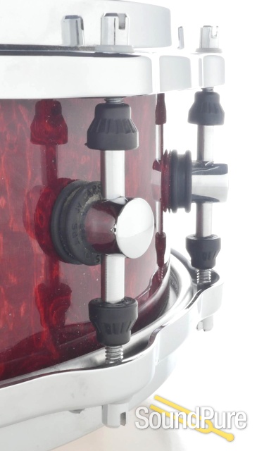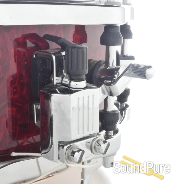 This is one of the nicest snare drums we have had the pleasure of having in our store. The shell on this drum is the Maple Light which consists of three layers of 3-ply of maple creating a shell thickness of about 6.7mm and finished with gorgeous Cherry Gloss Birdseye veneer.