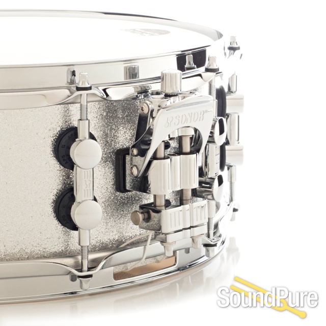 Sonor 14x5.5 SQ2 Medium Maple Snare Drum with a Silver Sparkle Lacquer finish.