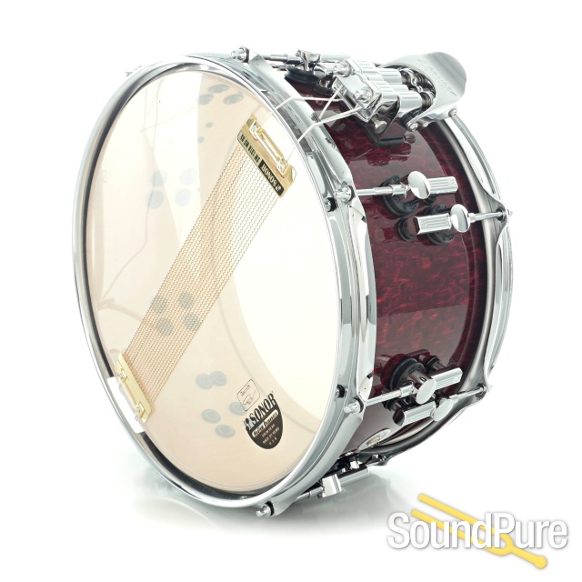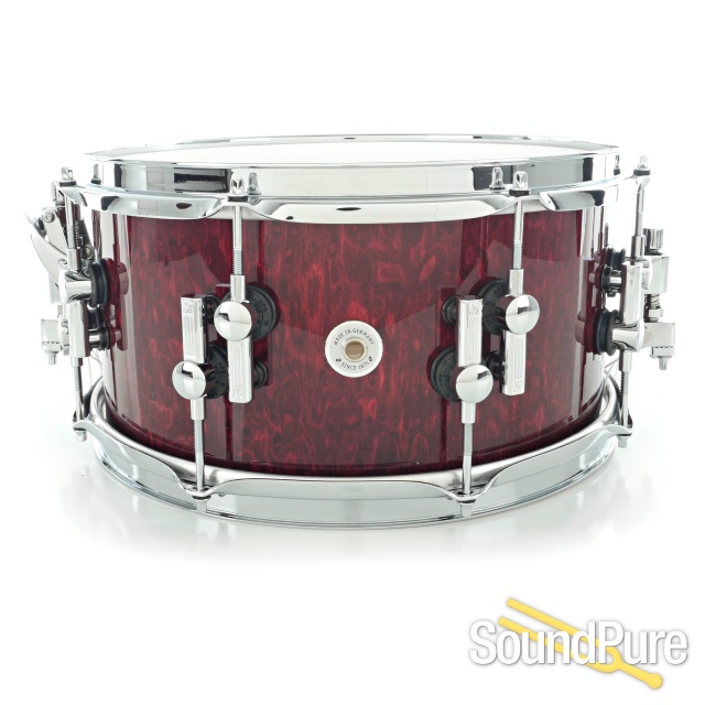 Sonor 13x6.5 SQ2 Vintage Birch Snare Drum with a Cherry Birdseye veneer and a gloss finish.