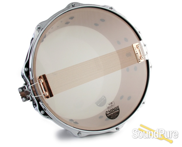 This Sonor 6.5x14 One of a Kind Snare Drum has a limited edition volume of 80. It features an extremely limited run of special designed snare drums with spectacular natural grown veneers and new shell designs. Vertical outside veneer grains have been introduced through Sonor in 1973 and are the companies trademark ever since. The snare features a gorgeous high-gloss-lacquered, Macassar Ebony veneer and chrome plated fittings. Die-cast hoops on top and bottom. The bottom hoop has an open bridge design to fully benefit the Dual Glide System. The lugs are the classic Phonic lugs with internal Tune Safe, which are a great compliment to the hand-selected German Beech shell. This snare is available for SoundPure's Try-Before-You-Buy Program, so if you want to hear how it sounds in your hands, shoot us an email to Drums@SoundPure.com or call us anytime at 919.682.5552. Thanks for watching!