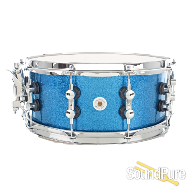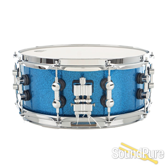 Sonor 14x6 SQ2 Medium Maple Snare Drum with a Blue Sparkle Lacquer finish.