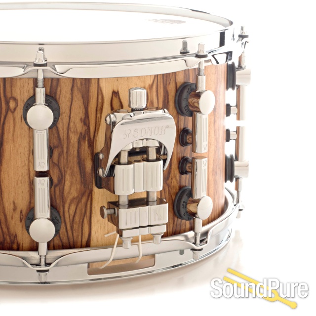 Sonor 13x7 SQ2 Medium Beech Snare Drum with an African Marble veneer finished with a semi-gloss finish.