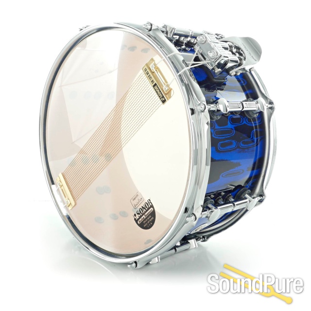 Sonor 13x7 SQ2 Medium Beech Snare Drum with a Blue Tribal Lacquer finish.