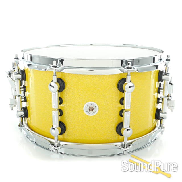 Sonor 13x6.5 SQ2 Medium Beech Snare Drum with a Yellow Sparkle Lacquer finish.