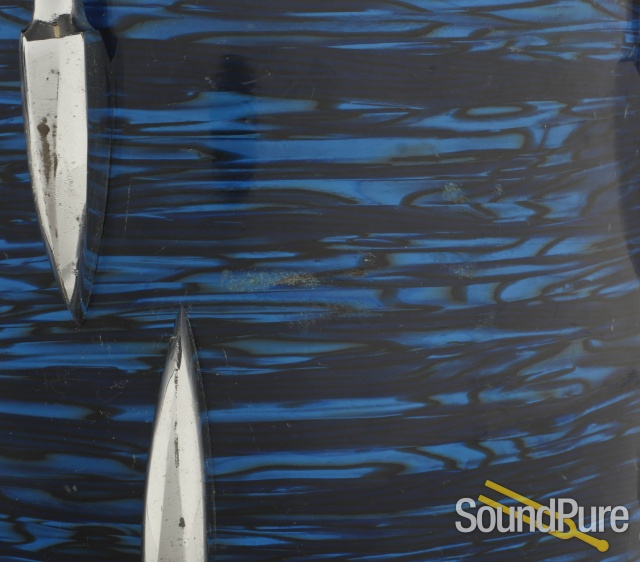 This vintage Sonor rack tom came to us as part of a full kit. We decided to sell this tom separately from the kit due to its physical condition not quite being on even terms with the other shells. The Blue Onyx wrap on this tom shows scratches and scuffs, as well as some puckering here and there. The chrome hardware is in decent physical shape, with some pitting of the lugs and hoops. Sonically, this drum is astounding. It packs plenty of the warmth and smoothness one comes to expect from a vintage Beech drum.